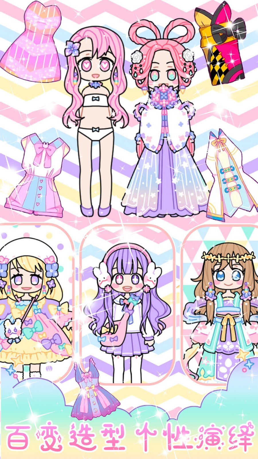 1、可爱的画面风格和精美的服装设计,让玩家体验到独一无二的时尚搭配游戏。