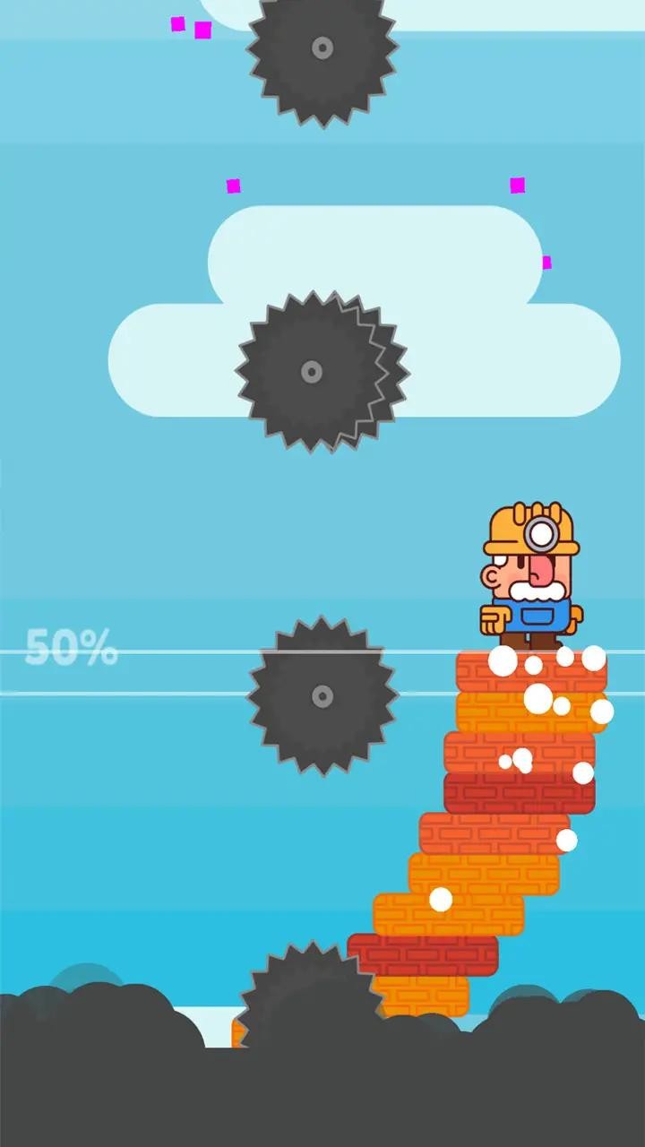 1.将砖块堆向天空,并开辟通往顶部的道路,还有很多的锯子会阻挡和伤害你。