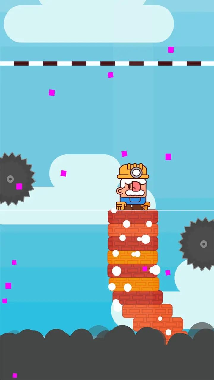 砌砖的诀窍,掌握游戏的节奏,不断躲避障碍,向上砌砖。