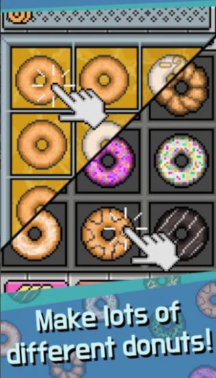 今天为大家带来的这款游戏叫做:甜甜圈大亨(DonutTycoon)。游戏中玩家需要制作出更多不同种类的甜甜圈来经营自己的小店,而游戏中玩家的小店每天会来很多客人,这些客人会提出自己的需求,玩家需要制作出相应的甜甜圈就可以满足客人的要求,每次客人用餐完毕就会给玩家相应的报酬,让玩家可以解锁更多的店内设施和菜谱,趣味性十足。