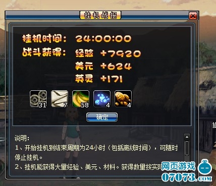 2、挂机能获得大量经验、美元、英灵、材料。获得数量按实际挂机时间结算。
