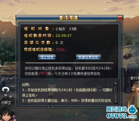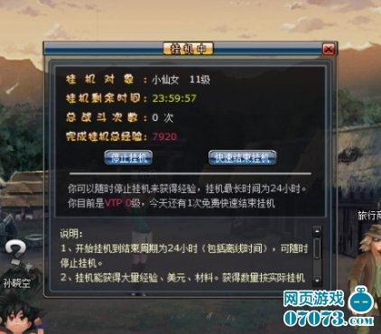 6、VIP玩家每天有免费快速结束挂机的机会,VIP等级越高,次数越多。
