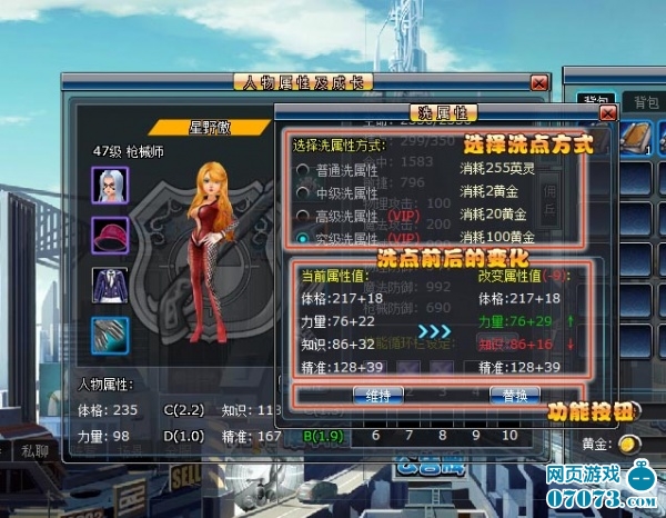 4、每次洗属性将随机改变四个属性,玩家可以选择替换或者维持