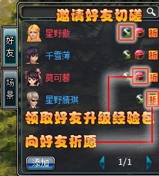 当好友升级,好友身上立刻会刷出100个经验包,加这个人好友的人都可以领取这个经验包。每人限领1次,领完后好友名字后面的经验包按钮消失。
