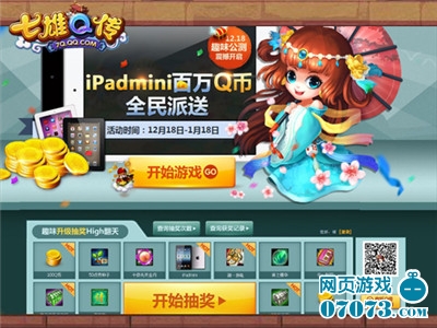 《七雄Q传》公测开启后的第一个月内,玩家只要达到20级就可参与一次抽奖,将有机会赢取iPad mini。升级抽奖赢iPad mini,你以为只有这么一次机会吗?玩家在50级前每10级获得1次抽奖机会;50级后每升5级还获得1次机会!
