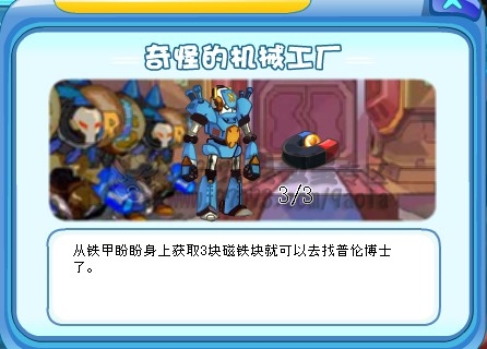 博士要我们从盼盼、铁甲盼盼、铁甲卫士身上获得3个磁铁块,在数码塔打铁甲盼盼就OK。