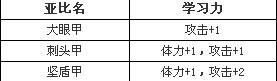 进化等级:0级大眼甲——20级刺头甲——40级坚盾甲