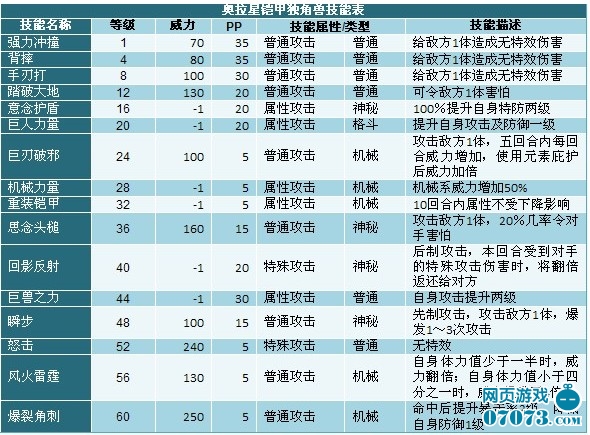 奥拉星铠甲独角兽亚比,下面就看看奥拉星铠甲独角兽的进化图、技能表和种族值吧。