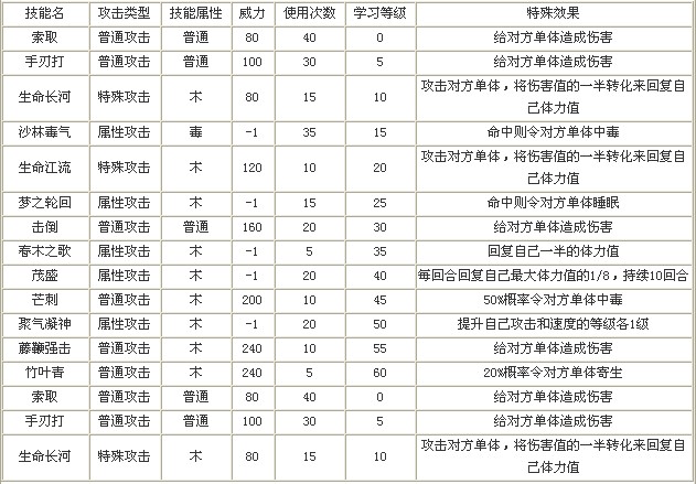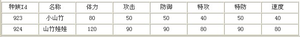 奥拉星山竹,山竹娃娃的进化图,技能表,种族值