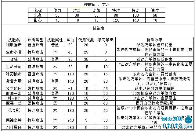 奥拉星北鼻,甜心的进化图,技能表,种族值