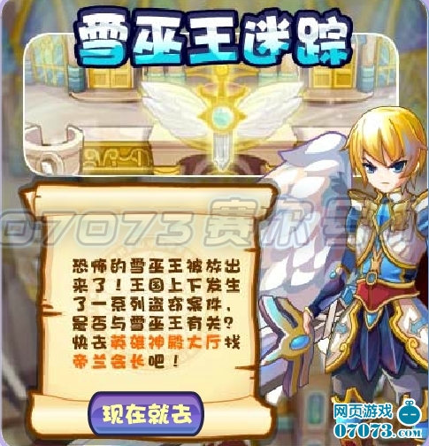 奥雅之光雪巫王一直像迷一样,他在上周失踪了,快去问问帝兰有没有雪巫王消息