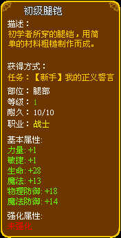 主页 > 游戏大厅 > 儿童游戏 > 龙斗士 > 资料库 > 装备介绍 > 龙斗士装备初级腿铠