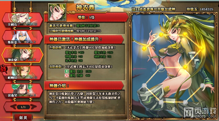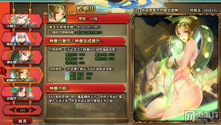 2.崆峒印:最实用的女武神加成。除女娲石外,这个要最先点到10级。25%的加成不是盖的哦!