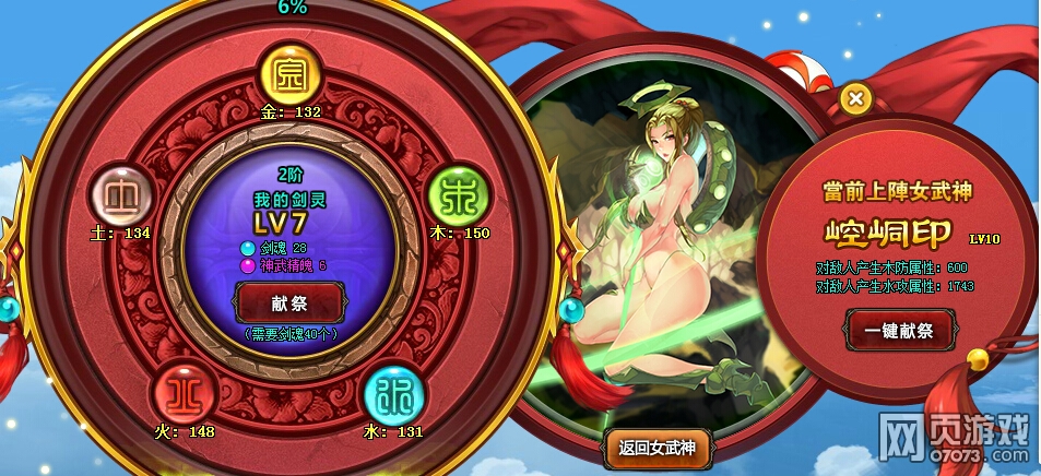 6.后期在全部点到10级后,5个女神用哪个好?首先大量玩家都是用女娲石和崆峒印(金防和木防),所以金攻和木攻的伏羲琴与神农鼎不要用。 就是在女娲石.炼妖壶.和崆峒印里选! 注:大家都在说女武神,忘了剑灵了吗,剑灵的5个属性对应5个女神,数值越高攻防加城越大,选与女娲石.炼妖壶.和崆峒印里对应数值最高的那个上阵输出是最多的。(当然可能用崆峒的人最多,至于为什么,你懂的!)