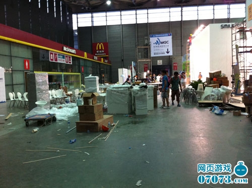 拍摄时间为晚上18:10,会场中仍有大量没有完工的展台,而12个小时后,就要迎接观众了。