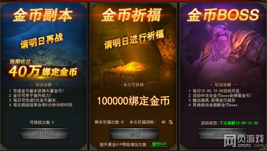 3、金币副本(可以打三次,打完1线换线打2次,打完2线打3线的),15:00点和19:00点,差不多都了,一次几百万金币妥妥的。