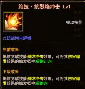 魔法王座绝技·抗烈焰冲击是我们魔法王座新开系统绝技的其中一个被动绝技,可减少敌人对自己的;烈焰冲击效果。