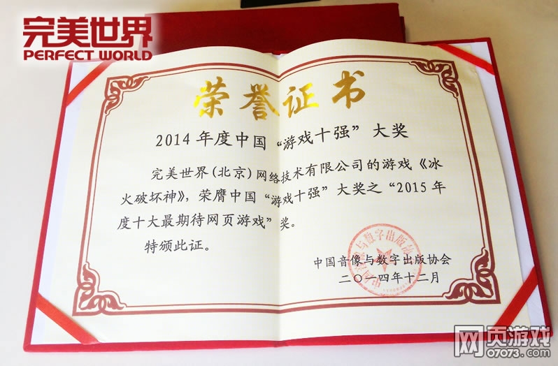2014年度中国“游戏十强”盛典已正式揭晓,国内游戏行业领军企业完美世界一举囊括中国“游戏十强”盛典的七项大奖,成为获得奖项最多的企业之一。其中,完美世界旗下暗黑风ARPG网游《冰火破坏神》荣膺中国“游戏十强”大奖之“2015年度十大最期待网页游戏”奖。