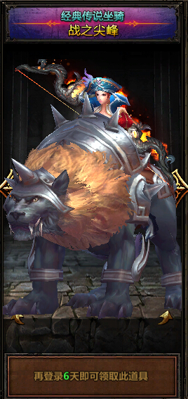 4、新增登陆礼包,登陆即送极品装备、死亡之翼系列时装、永久坐骑“战之尖峰”