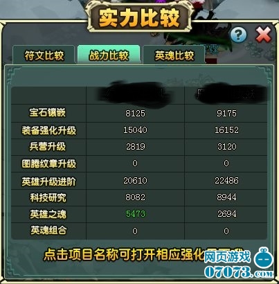 10月9日的更新优化了实力对比功能,对战过程中可通过“实力对比”查看双方详细的战力及英魂数值信息,这样玩家就可以更清楚的看到其他玩家的真实战力构成,输赢的结果在数据对比下一目了然。本次更新优化了符文比较、战力比较、英魂比较