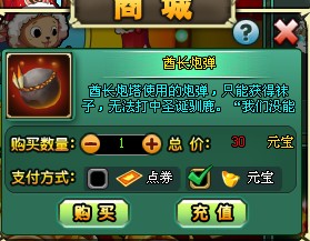 酋长炮弹只能打中袜子,一颗酋长炮弹30元宝