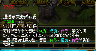 宠物系统开启后,通过试炼洞穴的特定关卡,即有机会获取宠物蛋及技能书,详情可通过宝箱的悬停说明查看。