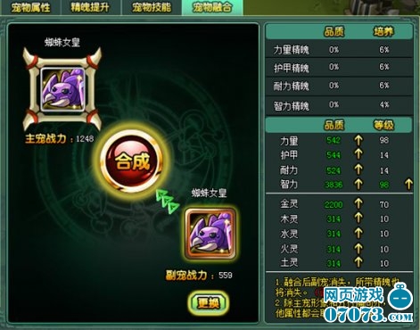 3. 宠物融合 — 通过融合副宠,主宠物除保留形象和天赋外,其他属性都会取较高值保留。
