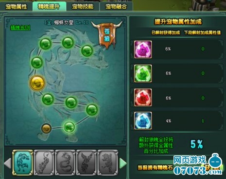 2. 宠物精魄 — 也称宠物培养,可以百分比加成宠物各项属性,提升战斗能力。