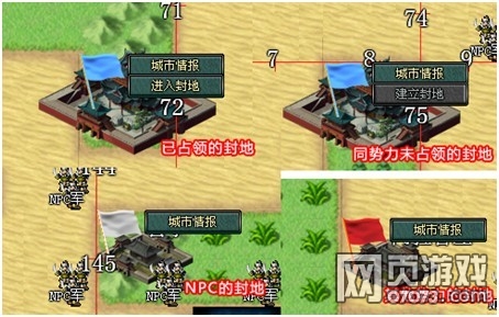 玩家开始的时候都有一个首都,点击官府后有内政界面。我们需要做的就是在汗水够的情况下尽力的开发内政。商业、农业、兵役齐头并进,然后在你的兵营里适当的生产一些轻骑,我们俗称QQ,这样的节奏能让你在你的赵云90级的时候就可以出门去建立一些周围的同势力封地。