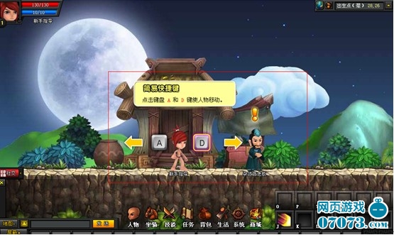 新手指引将会提示玩家如何移动,按键A和D分别为控制玩家左右的移动,空格可以控制玩家角色跳跃,按W可以控制角色切换传送点场景和攀爬。