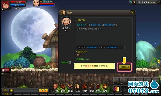 点击接受任务,即可获得任务,所获的人物将会出现在任务列表中,NPC头像处有黄色的感叹号,则表示有任务可以接受。