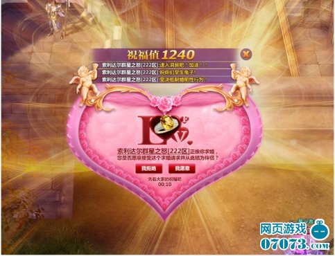 2. 队长选取“我们要结婚”服务,在求婚界面上放入您选定的求婚戒指,然后等待对方同意即可。