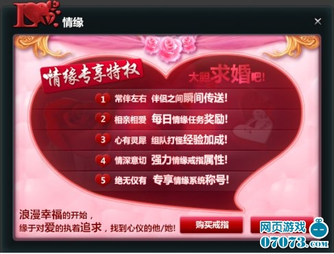 2. 结婚双方可专享情缘任务,获得大量奖励,提升情缘等级。