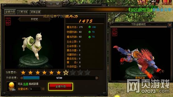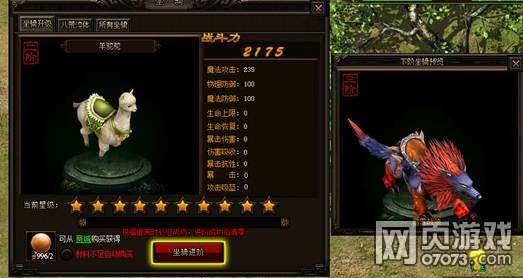 1.您可以通过使用来坐骑升级丹来升级您的坐骑,档升级进度满时,您坐骑的星级就会提升,每升一星都会永久增加您的属性