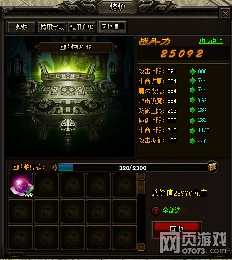 道具回收熔炉登场,将把您所有无效的道具根据价值回收并获得永久属性提升!