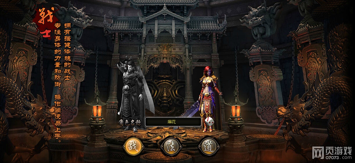 首先大家要在战士、法师、道士三个职业中选择一个,起好名字之后进入游戏。