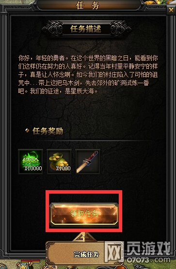 初入新手村,根据游戏中的剧情坐主线任务即可,完成每个任务获得相应的装备及技能,点击装备可以提高角色的战斗力。