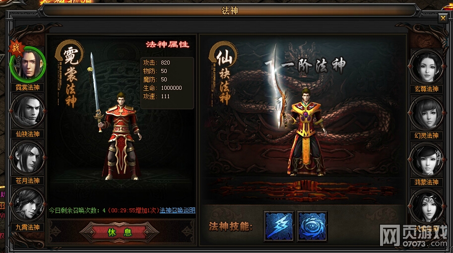 玩家39级后,将激活天命法神系统。点击主界面的天命法神按钮,可以打开法神系统界面。