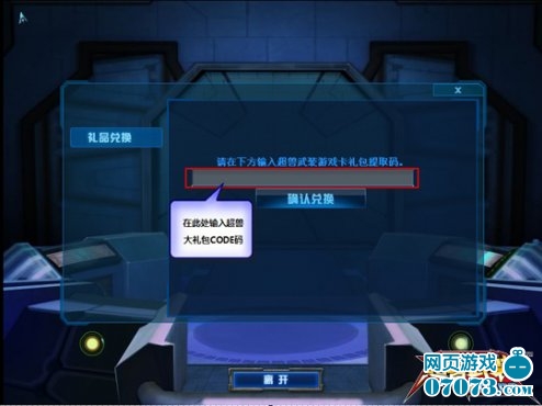 在指定对话框中,输入兑换卡上的唯一CODE码,确认无误后,点击确认。
