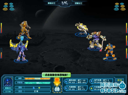 当异能量达到100%时,可使用双人或三人合体召唤技。