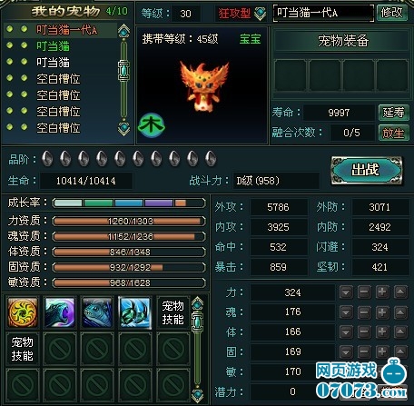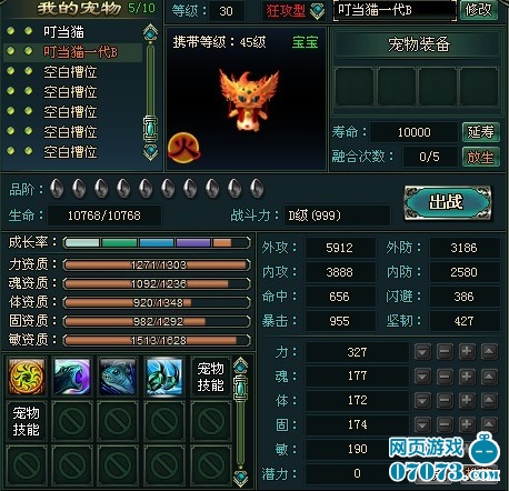 由上图可以看见,叮当猫二代的资质比起一代力资质1260和1271,高出了很多。整体资质也有所提高。