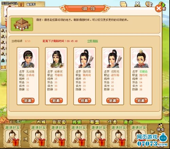 豆包战国怎么招募将领?在城中的酒馆是武将驻留的地方,在这里可以招募到心仪的武将。武将有统帅、防御、攻击、体力4个属性,根据玩家不同的需求,选择适合的武将。