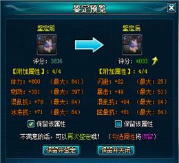 4、装备可进行多次鉴定,重复鉴定时,系统会让您选择“保留鉴定前的属性”和“保留鉴定后的属性”,如图