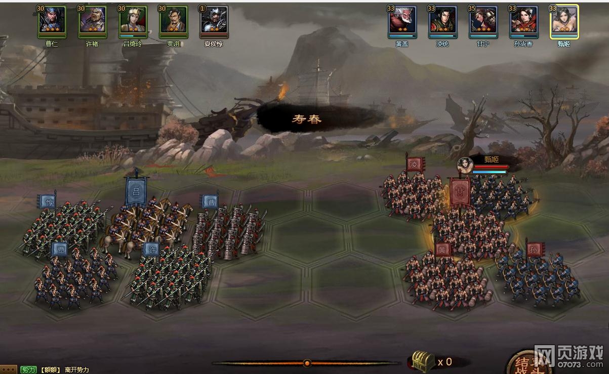 大皇帝寿春甘宁武将选择:曹仁、贾诩、吕MM、许褚、随意(第一回合甘宁必秒)