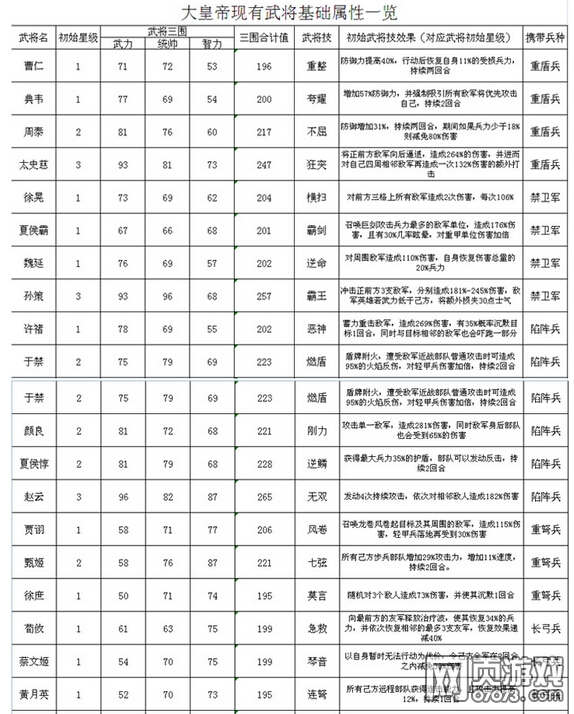 大皇帝武将基础属性一览表,有玩家制作出了一张非常牛掰的表格,小编都给跪了,大家一起来看看那这张大皇帝武将属性一览表吧。