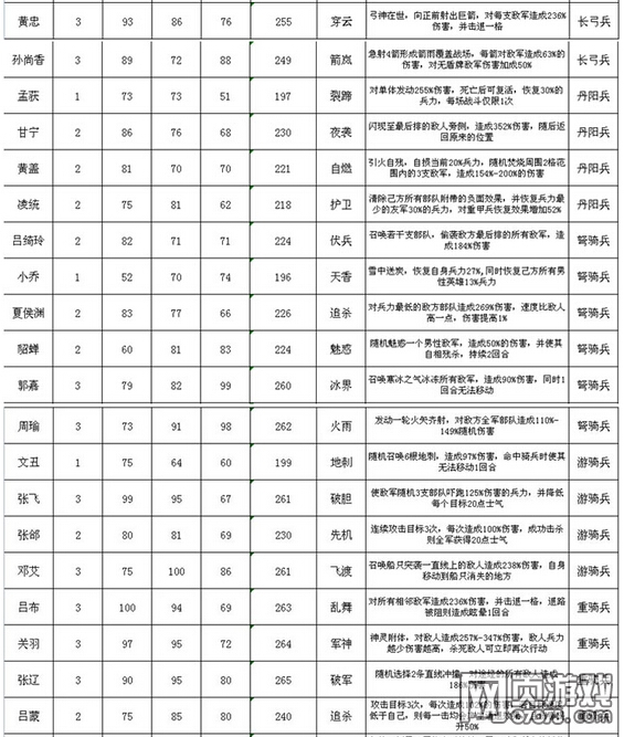 大皇帝武将属性技能一览