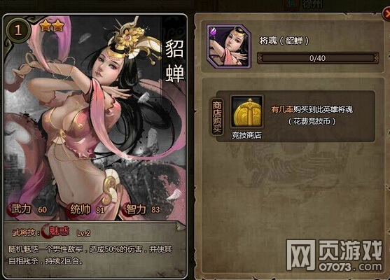 优点:身为弩骑对前排的普工伤害相当可观,技能霸道无双,在强的将领在貂蝉的面前都形同虚设!一个媚眼抛过去,瞬间6V4!如果魅惑的是敌方战力最高或者怒气刚满的英雄,你就知道貂蝉有多么给力了!有了貂蝉,妈妈说我再也不怕卡图了。推图神器!PK同样给力!