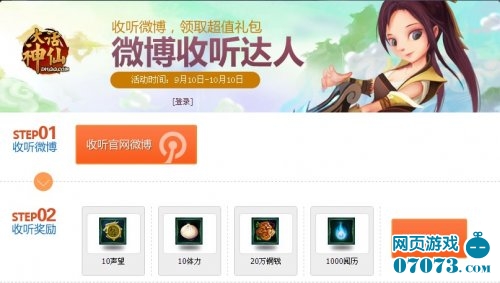 游戏大厅 > 角色扮演 > 大话神仙 > 新闻公告 > 大话神仙收听微博 领取超值礼包