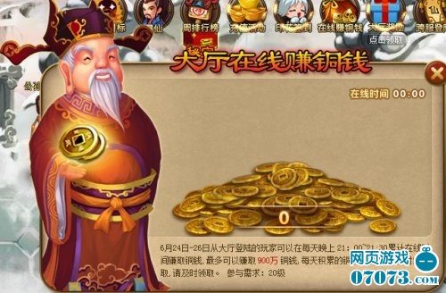 QQ游戏十周年,大话神仙送豪礼!活动期间游戏内角色达到20级的玩家,在21:00-21:30期间在QQ游戏大厅在线,最高可获得900万铜钱。心动不如行动,快来参与吧!