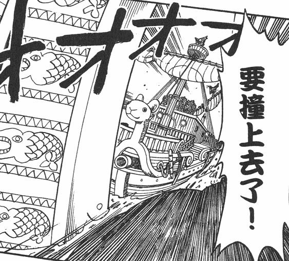 于是,现在到了路飞和zoro同学展示默契的时间,他俩之间的默契太帅了 ><船舵断了><